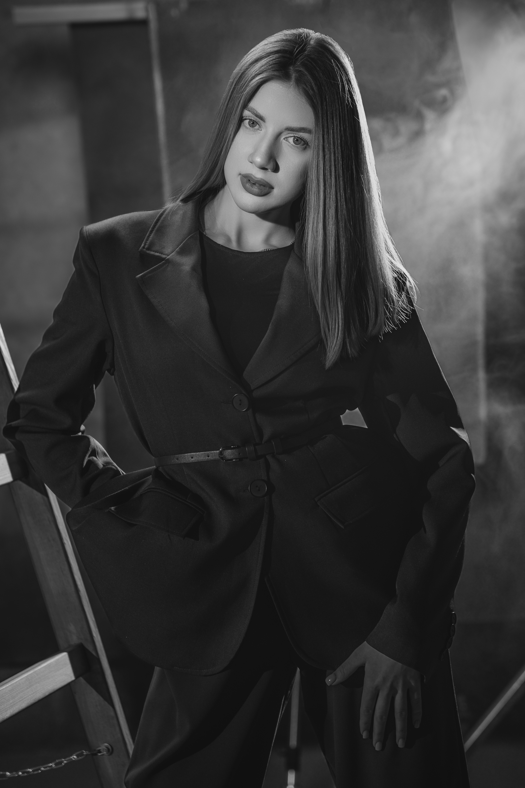Свет и тень работают на образ — уверенная поза, чёткие линии костюма, атмосфера напряжённой сосредоточенности. 🖤
