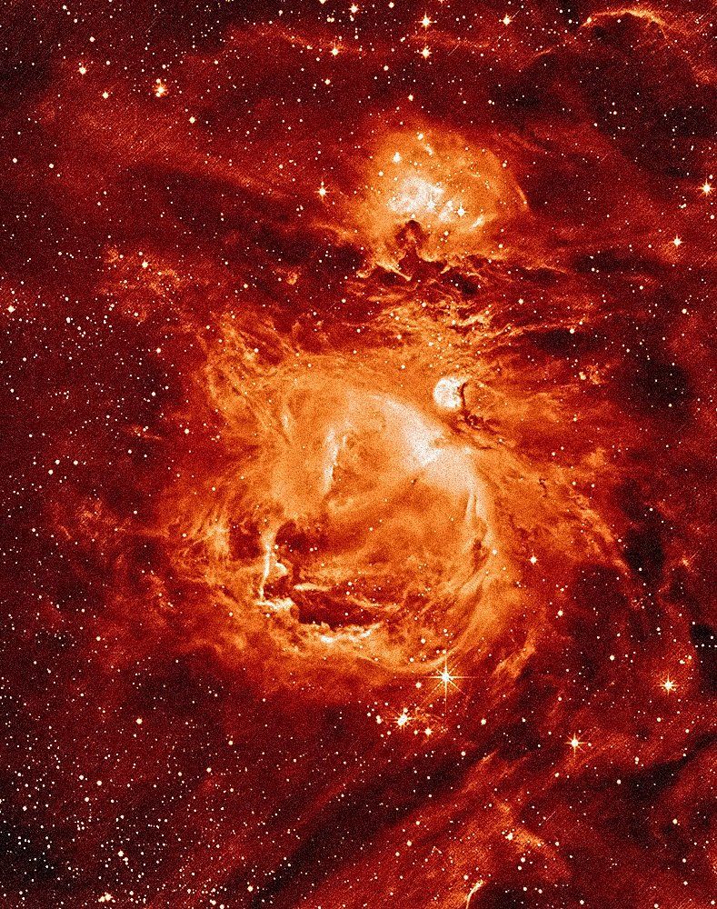 Открою страшную тайну! :) Изображение было чёрно-белым! Матрица ЧБ и снималось за монохроматическим фильтром. Н-альфа - это очень плотный рубиново-красный. В нём лучше всего видна структура туманности. А потом я присвоил различным плотностям различные цветовые оттенки - примерно как у пламени, это комфортно для глаза и, вообще-то, весьма близко к истине - туманность и в реале красная со светлым центром.