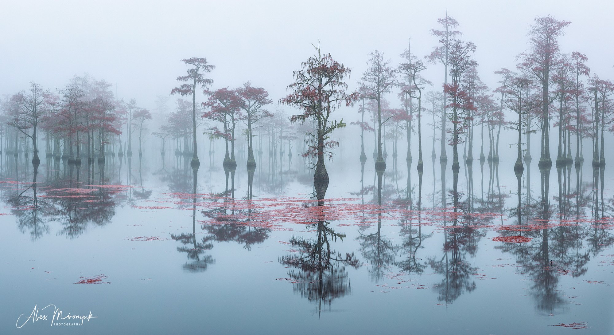 осень, вода, озеро, кипарис, туман, утро, отражение, Alex Mironyuk