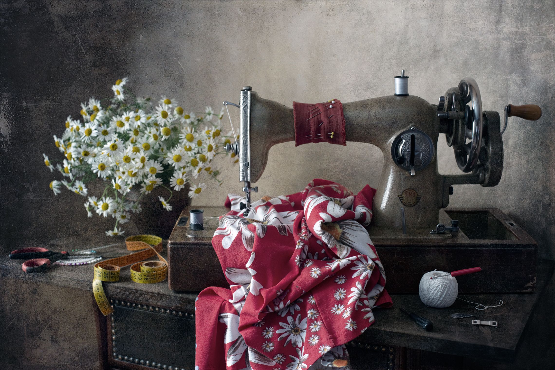 миламиронова, фотнатюрморт, швейнаямашинка, ткань, сарафан, ромашки, лето, ножницы, нитки, Миронова Мила