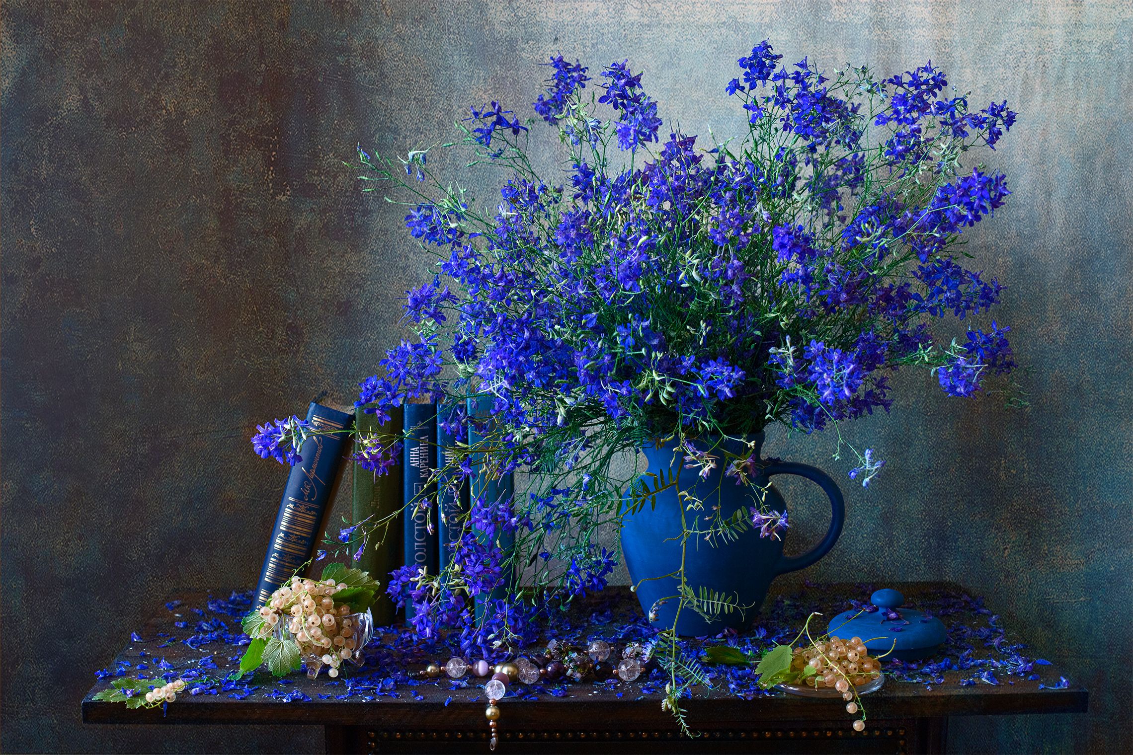 миламиронова, фотонатюрморт, лето, stilllife, цветы, букет, натюрмортсцветами, сокирки, дельфиниум, книги, смородина, ягоды, Миронова Мила