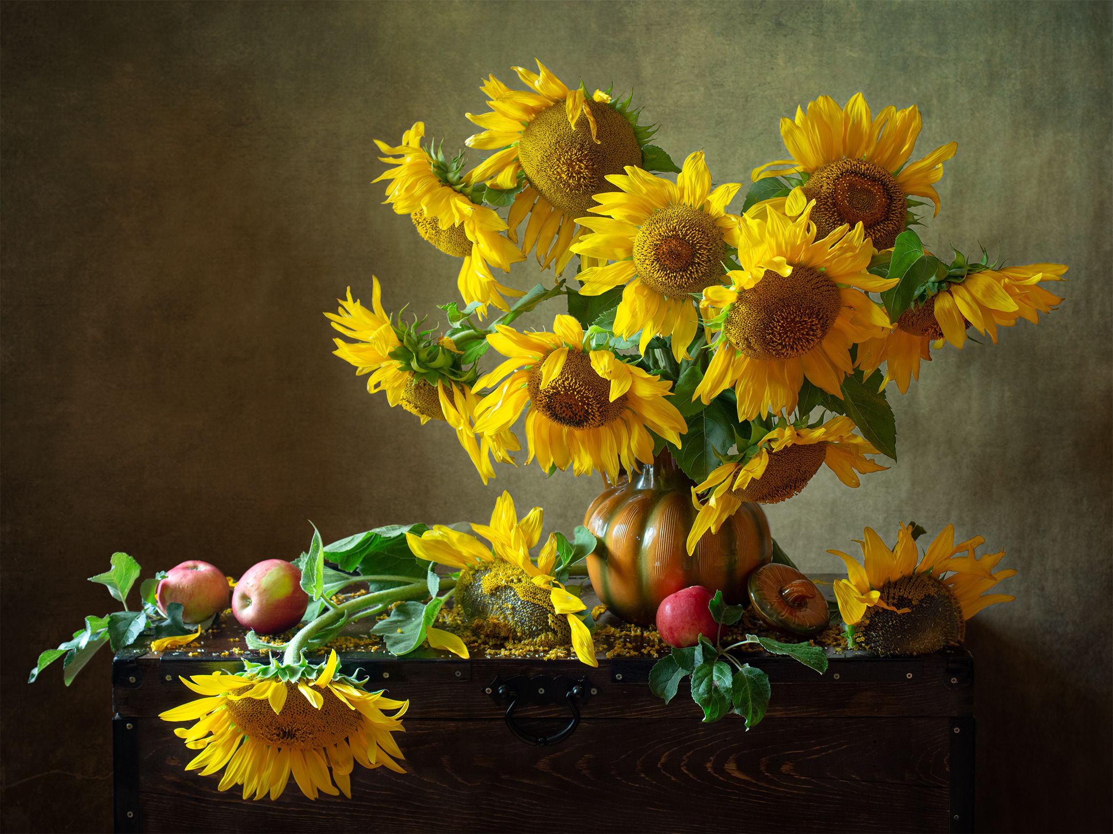 миламиронова, фотонатюрморт, натюрмортсцветами, цветы, букет, подсолнухи, август, яблоки, Миронова Мила