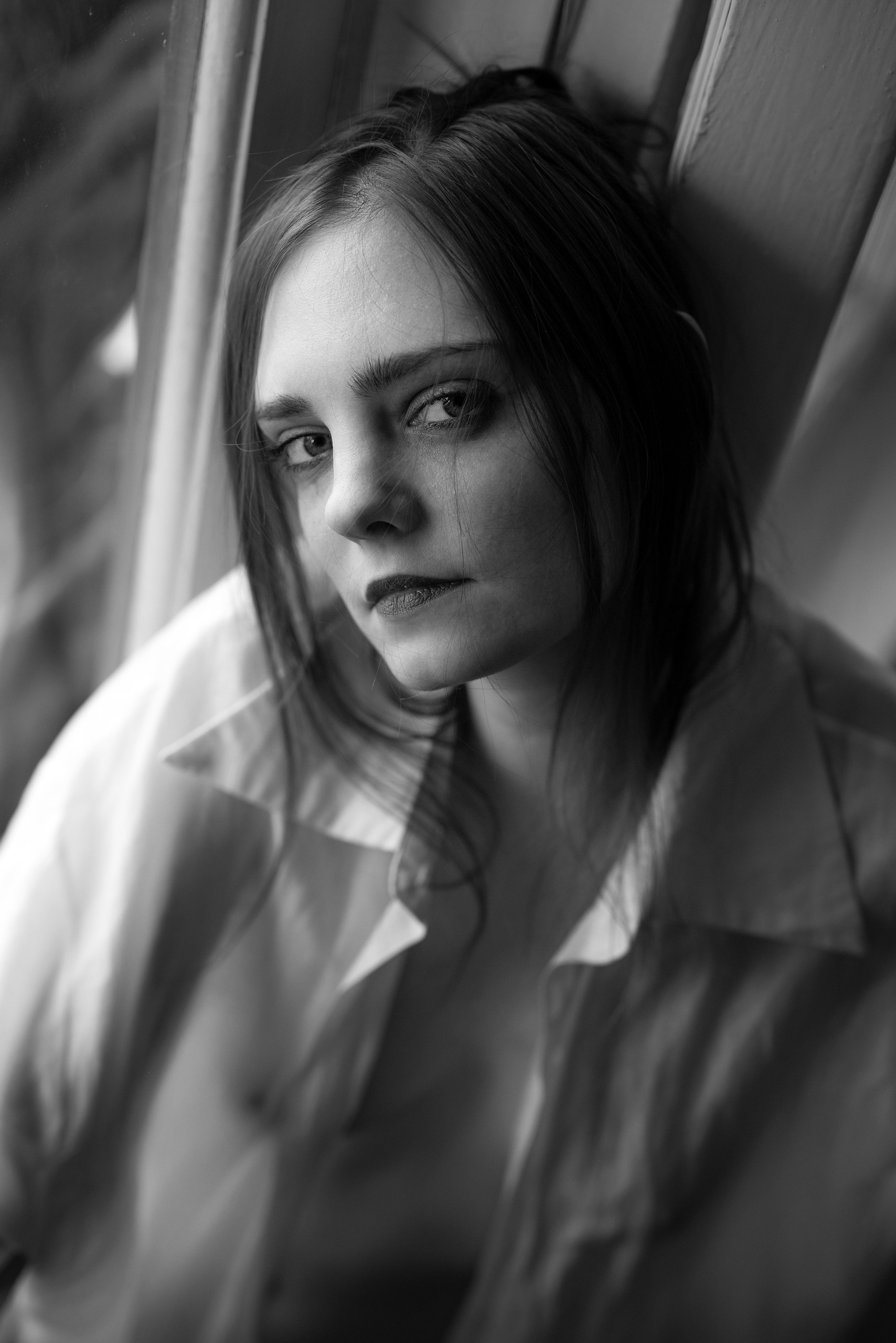 Получилось неплохо — свет и тени ловко подчеркивают выражение лица, а поза создаёт ощущение задумчивости. 🖤