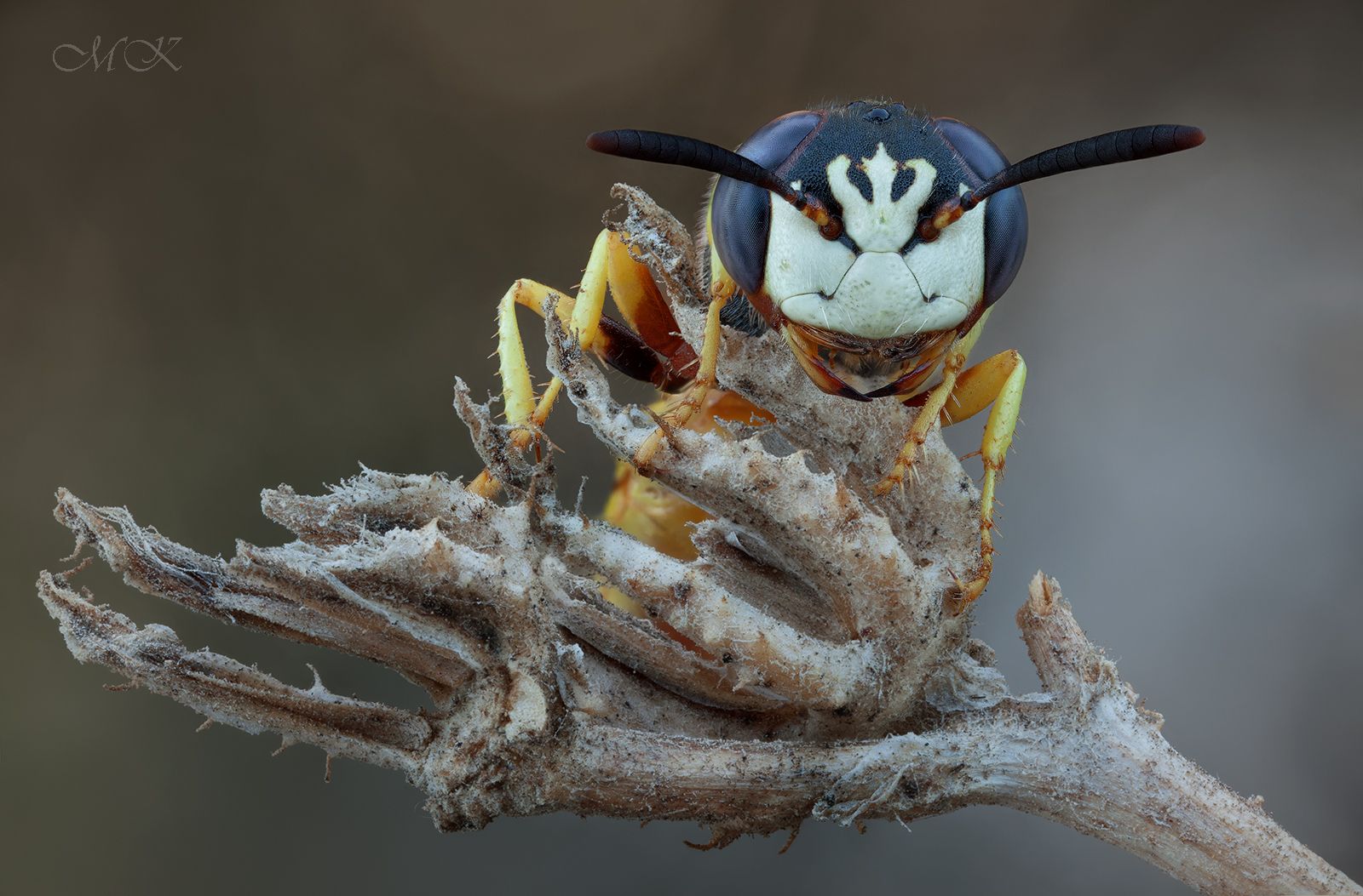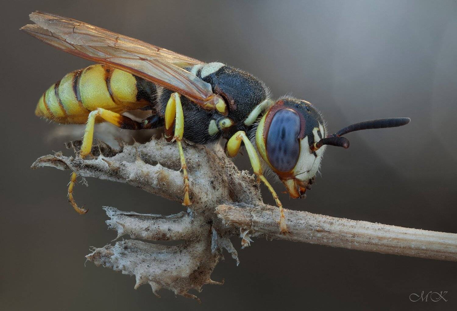 Эта небольшая оса ( размером обычно около 1см) - умелый охотник на пчел.