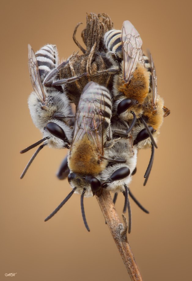 А я не встечал таких больших скоплений. Да, чаще они, как и осы, спят вниз головой. Кстати, после трудового дня возвращаются отдыхать на ту же веточку, вот что интересно:-).