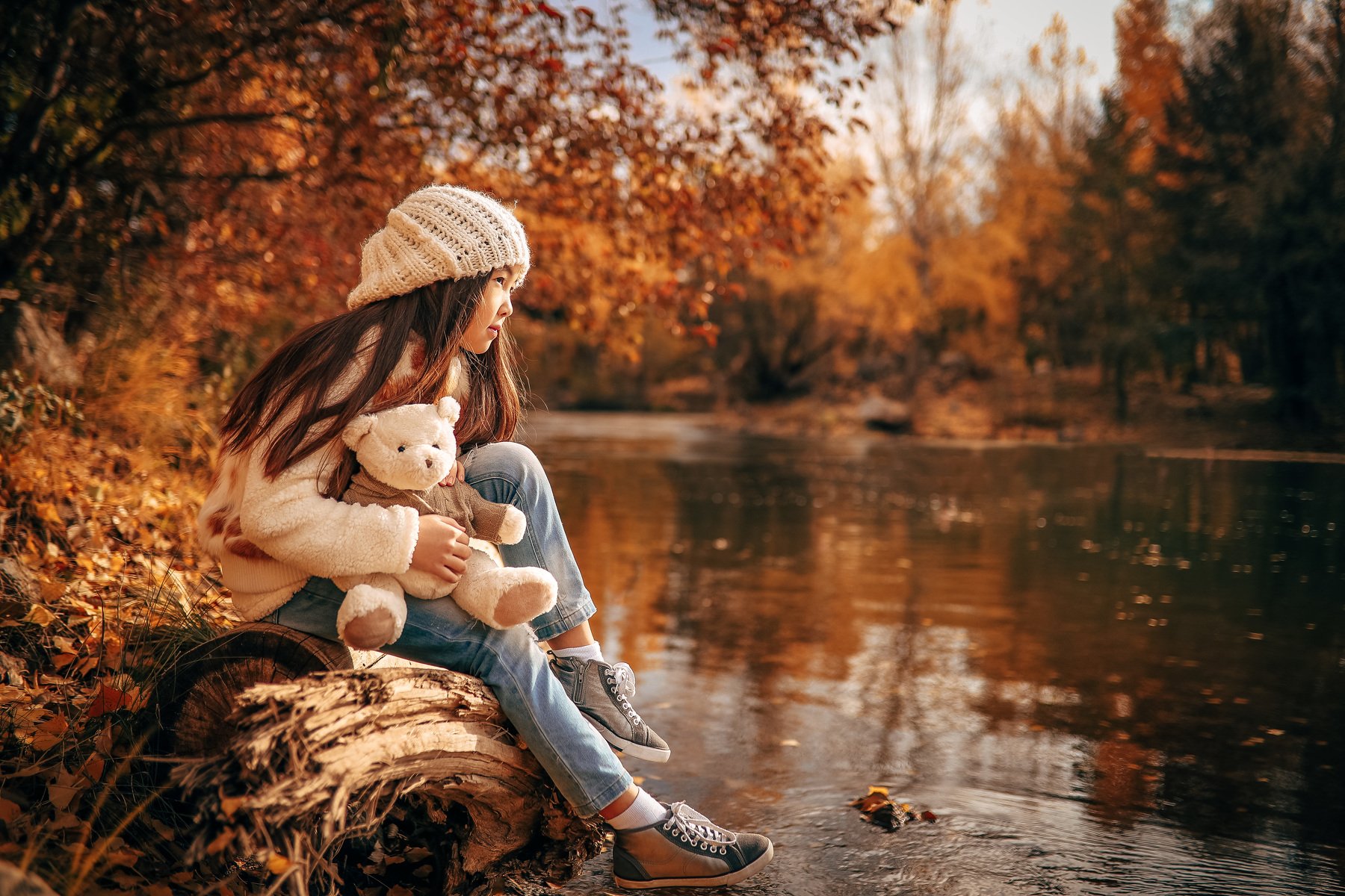осень,девочка,река,бревно, Михаил Михайлюк