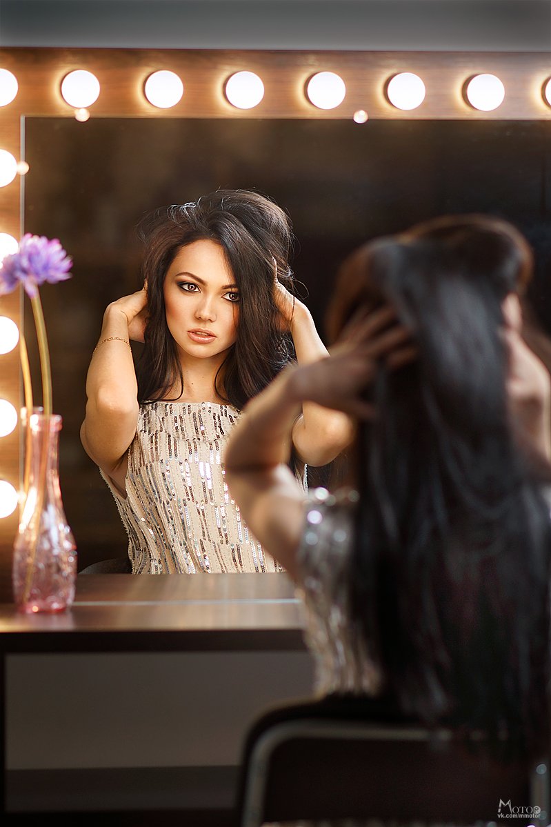 девушка, бьюти, красотка, зима, глаза, зеркало, Матвеев Максим