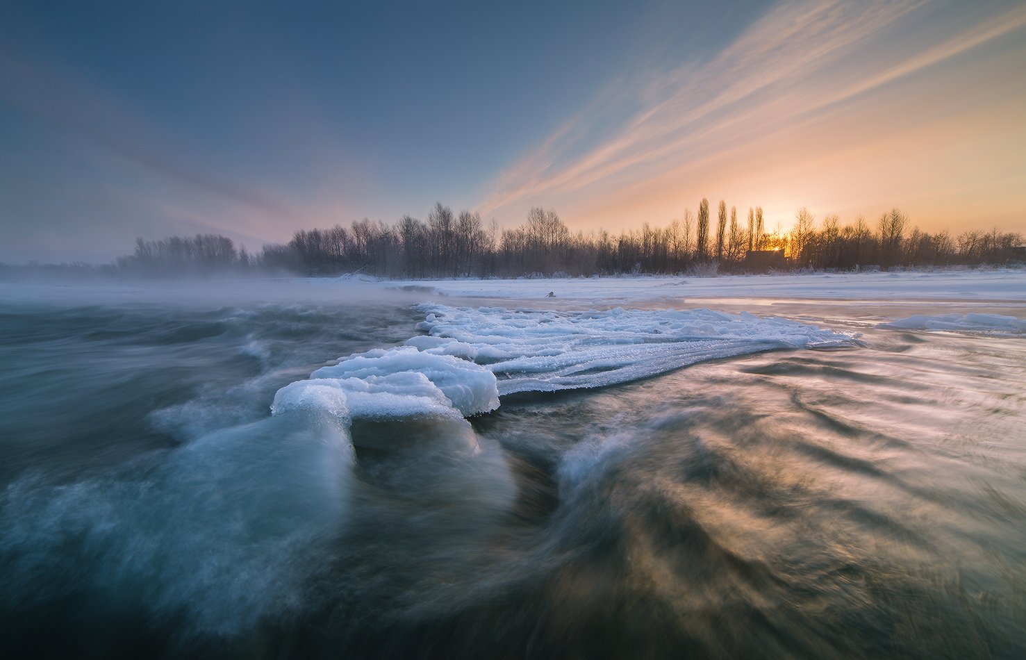 февраль заря река лаба ледяной остров, Николай Мысливцев