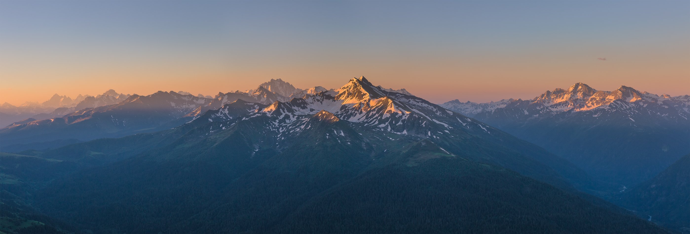 из похода на пятиозёрье под Загедан скалой. Значимые вершины слева в рассветном тумане София в центре на заднем плане гребешок г.Пшиш на переднем Закзан-Сырт в правом нижнем углу просматривается долина реки Б. Лаба