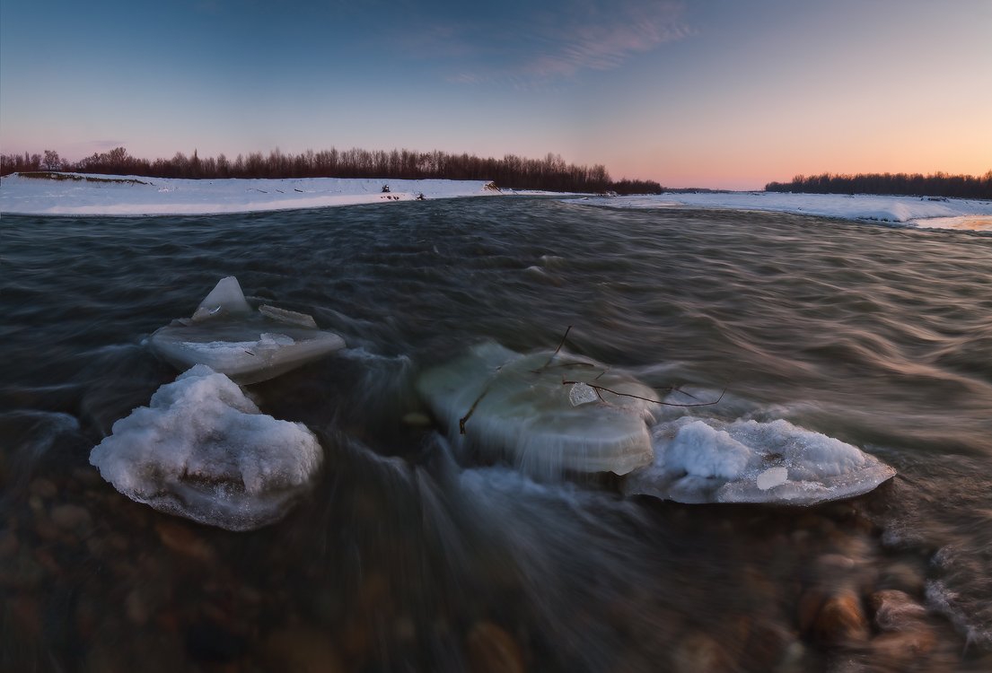 зима, январь, река, лаба, странники, льдины, Николай Мысливцев
