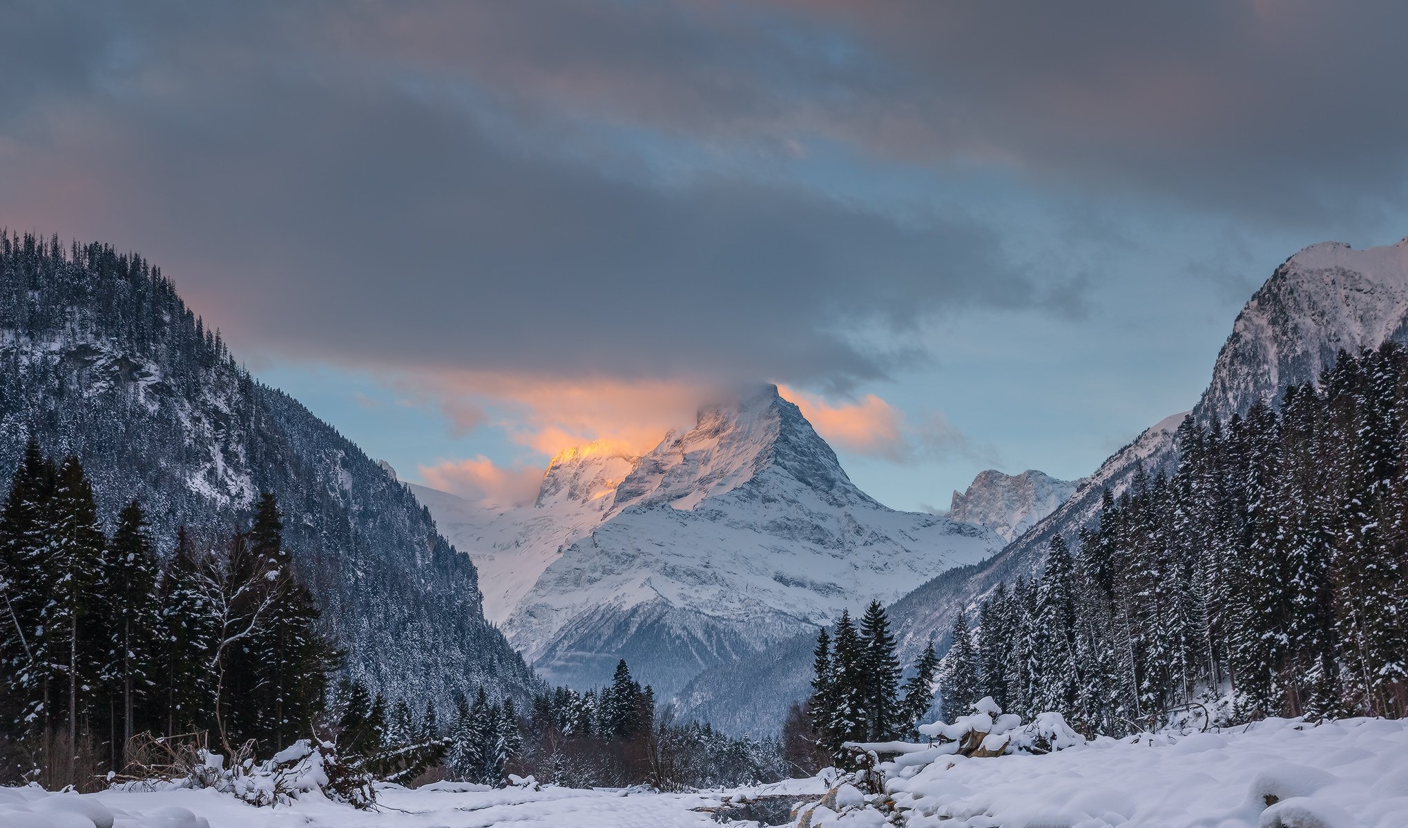северный кавказ, домбай, рассвет, белалакая, Николай Мысливцев