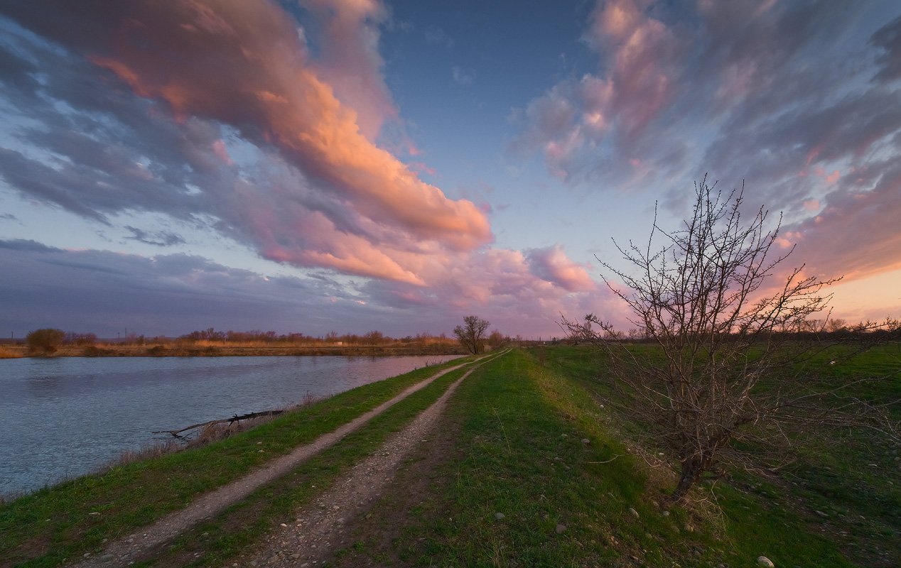 весна, вечер, закат, пруд, дорога, Николай Мысливцев