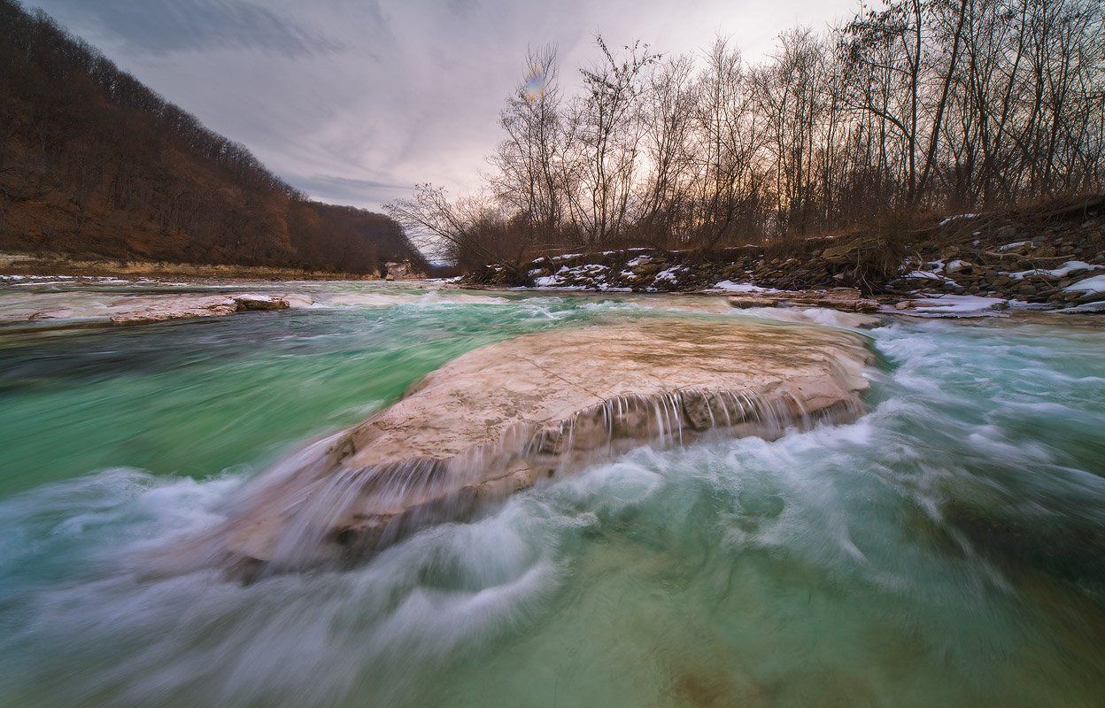 малая, лаба, белые, скалы, вечер, пасмурный, день, Николай Мысливцев