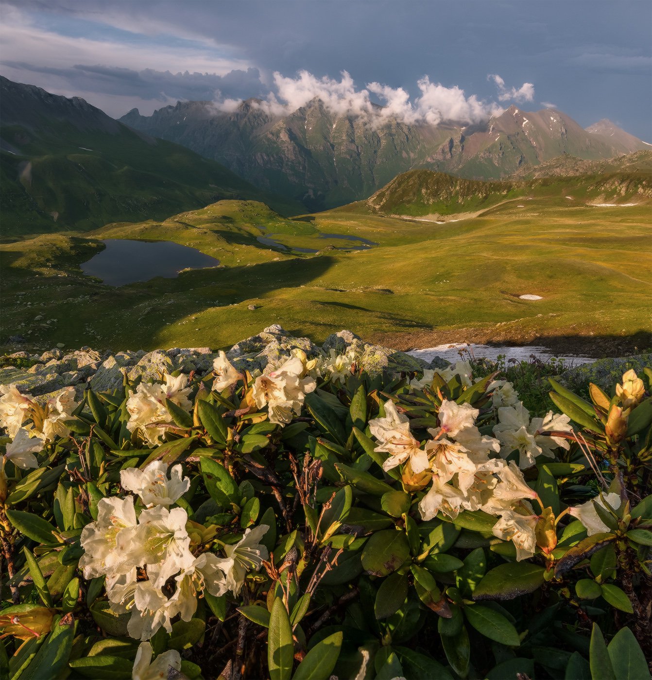 северный кавказ, загеданский хребет, пятиозёрье, рододендроны, вечер, июль, Николай Мысливцев