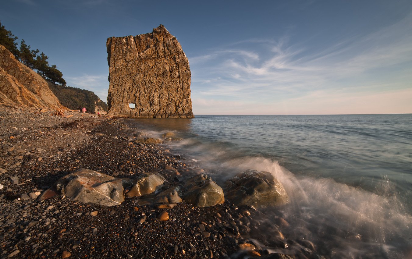 Но есть у этой скалы ещё одна загадка. Это – почти прямоугольное отверстие внизу скалы Парус, на высоте примерно двух с половиной метров от основания.