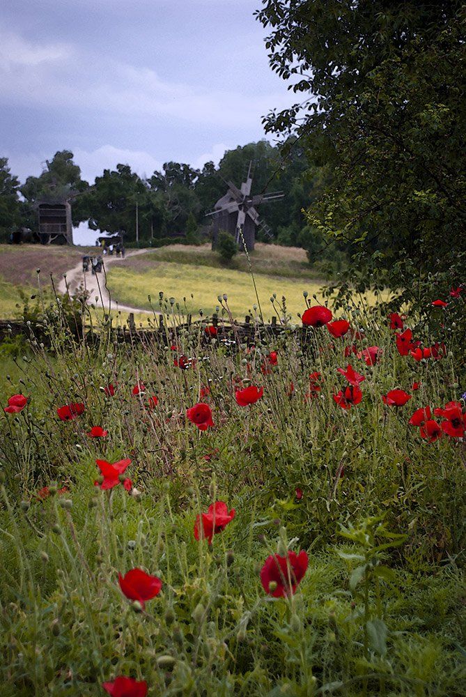лето,маки,мельница,дорога., Александр