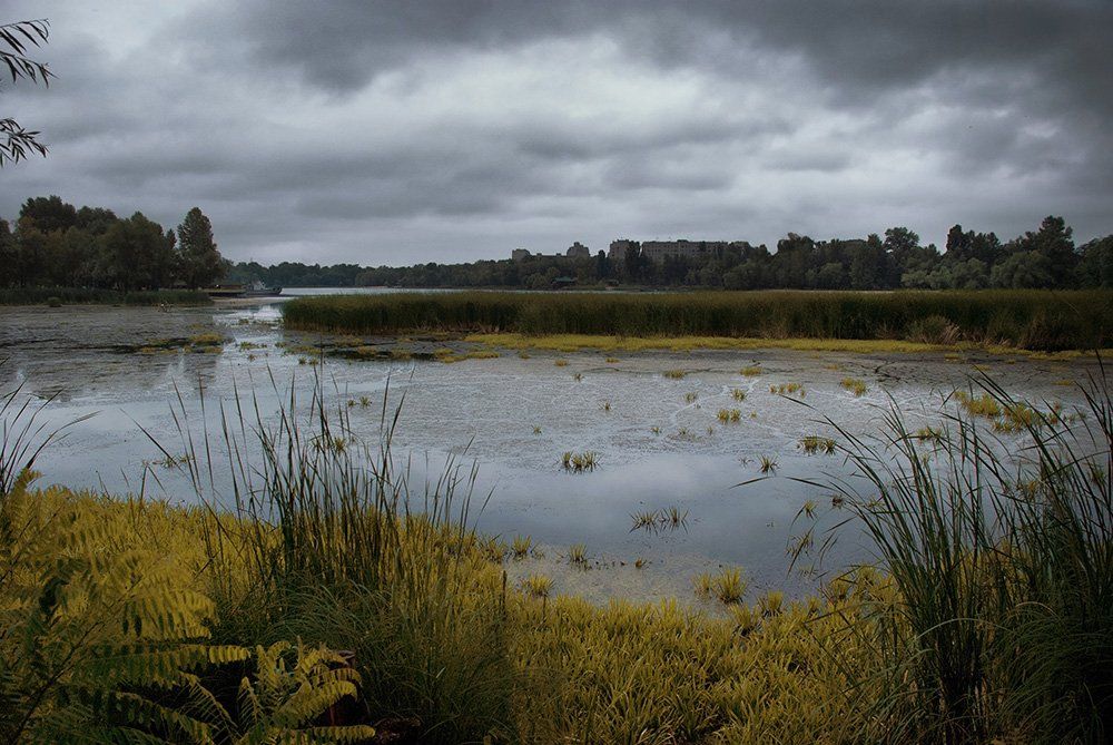 болото,	 залив,	 лес, небо,	 черта города, экология., Александр