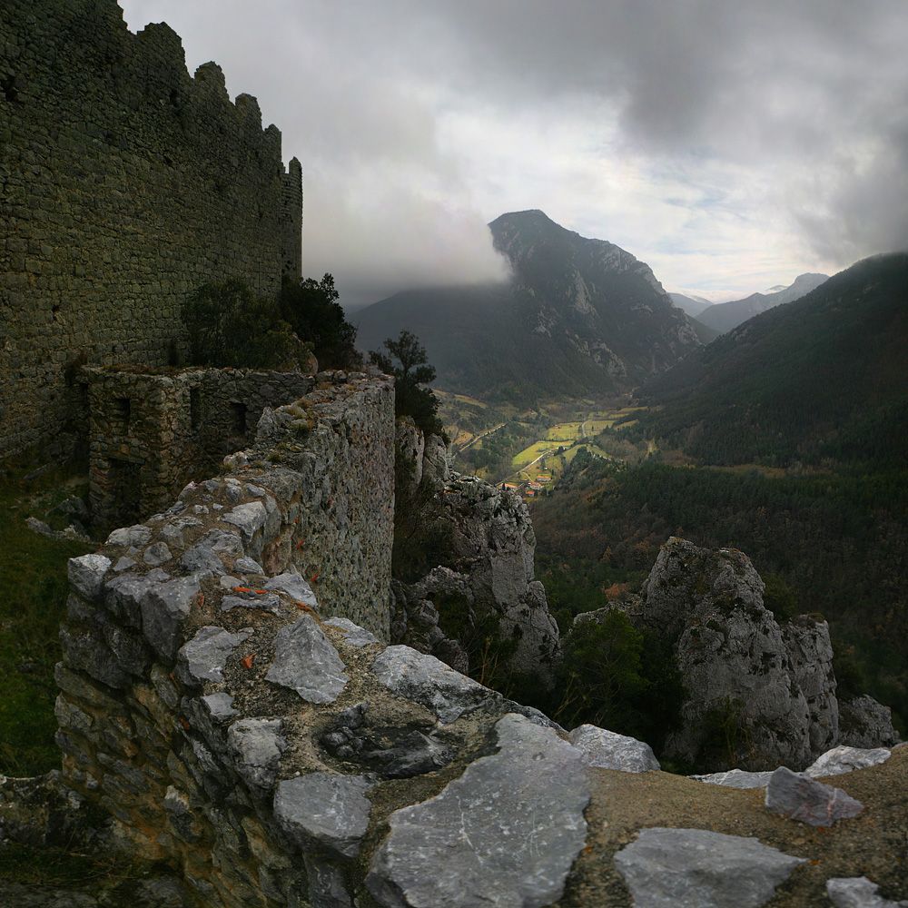 Привет, Гриша. А я решил эту серию в остальное зафигачить, поскольку все-таки ни разу не пейзаж, а там не дают на карту жамкать. Это катарский замок Куерибус, Лангедок, предгорья Пиренеев