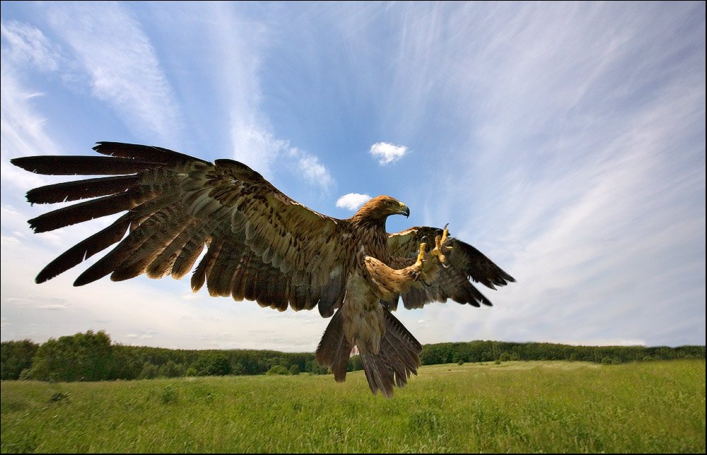 А птичка ловчая, кончики маховых перьев и хвостового оперения в плохом состоянии, что весьма характерно для ловчих птиц.