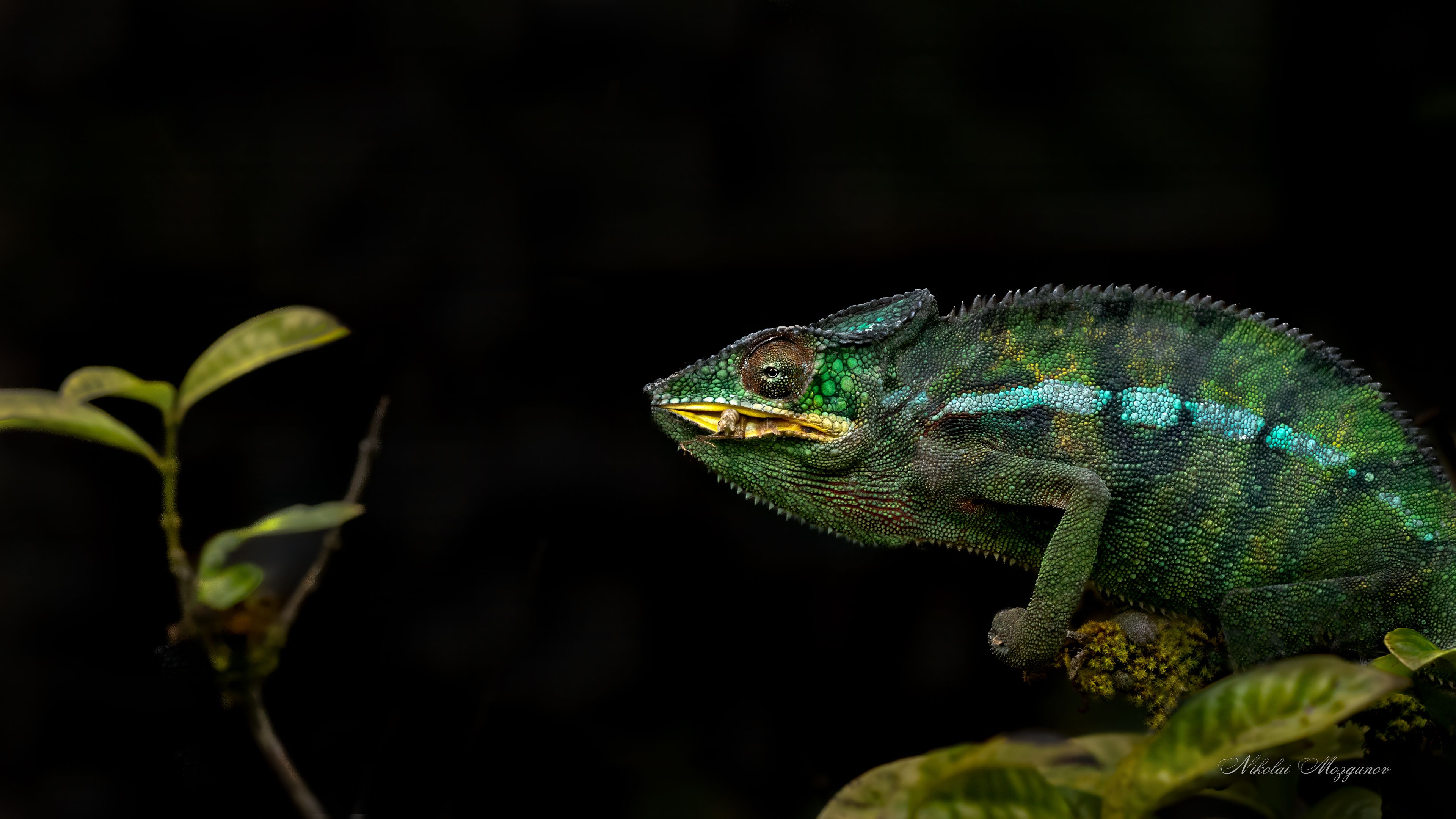 Хамелеон-потомок динозавра...Семейство ящериц живущих на деревьях.Меняет окрас в зависимости от температуры, влажности и настроения.Стреляет языком ,равным длине тела...кончик этого диковинного языка покрыт клейким веществом, превращаясь в присоску он не оставляет жертве не единого шанса...
