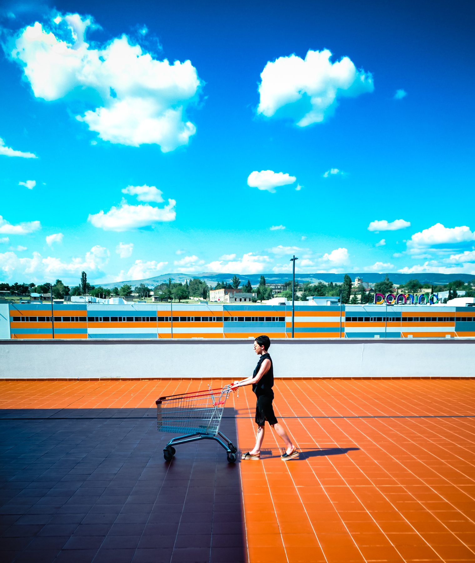 пустая тележка, но всё это ярких цветах как в рекламе
