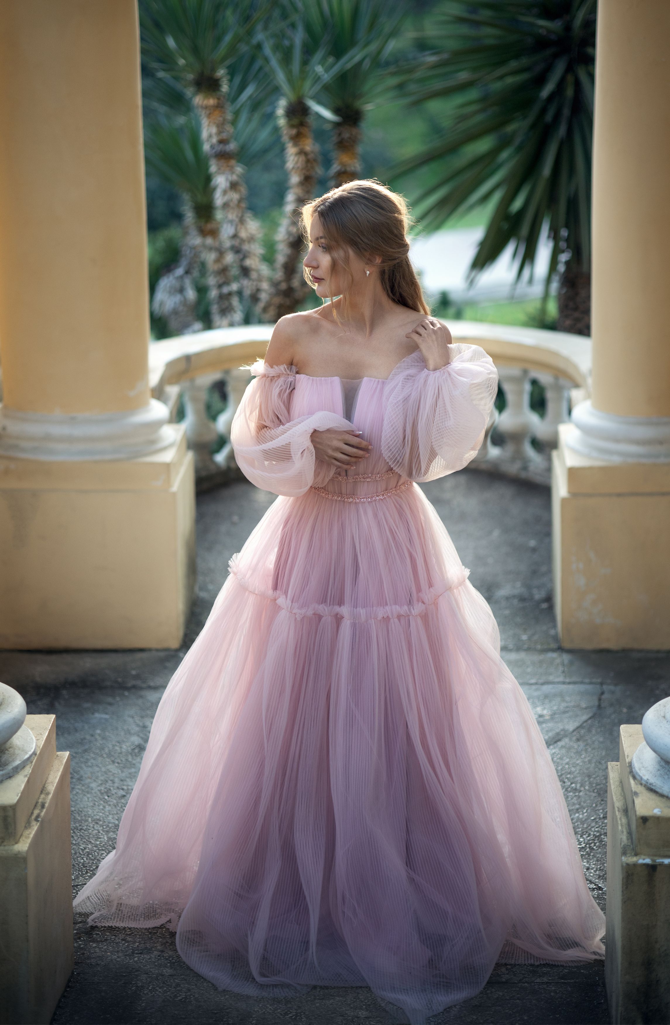 девушка закат парк пышное платье невеста классическая архитектура вечер, Ирина Мухина