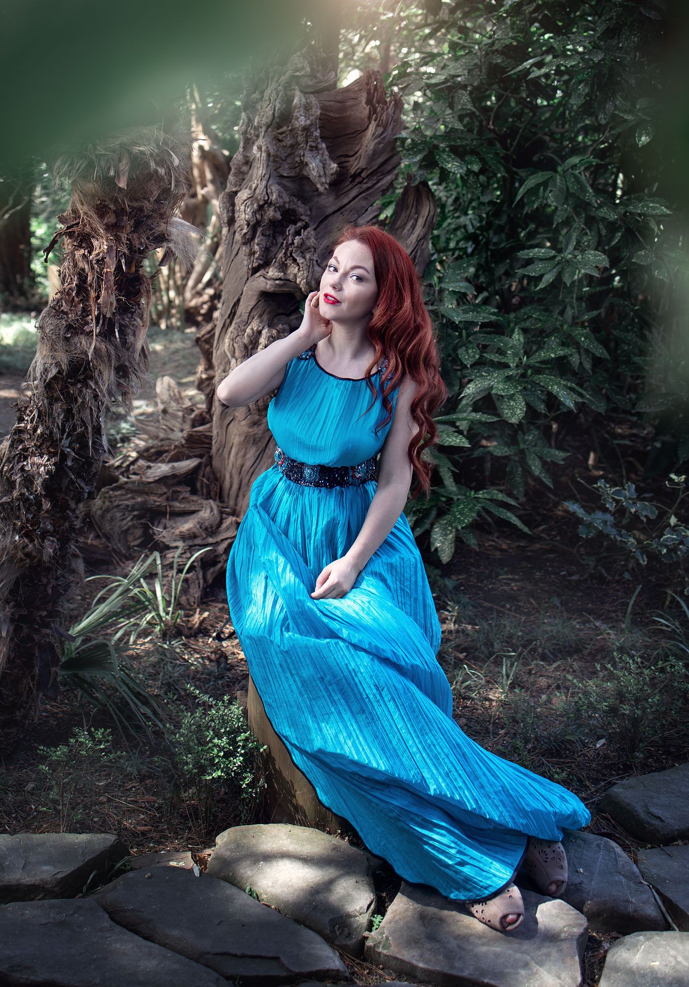парк рыжеволосая девушка бирюзовое платье лесная фантазия сад, Ирина Мухина