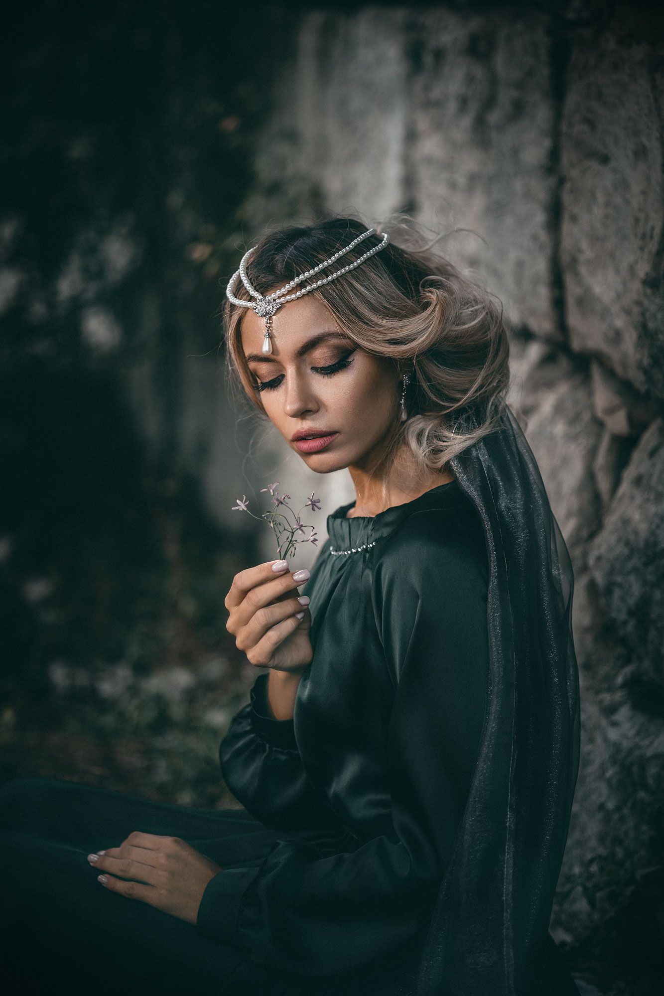 портрет девушка старинный замок цветы средневековье зеленое платье корона сказка, Ирина Мухина