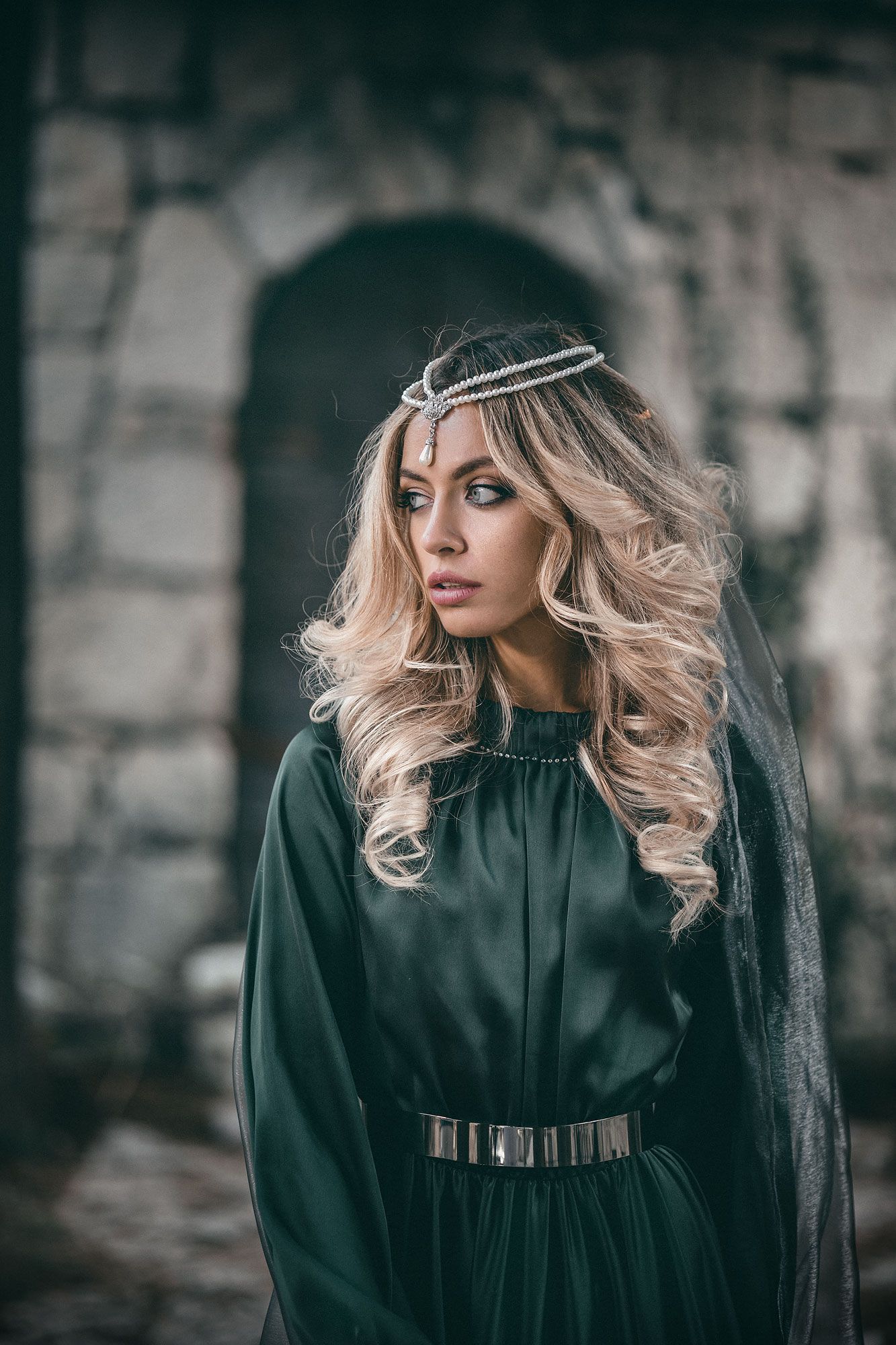 девушка принцесса средневековый замок фантазия история зеленое платье корона шлейф , Ирина Мухина
