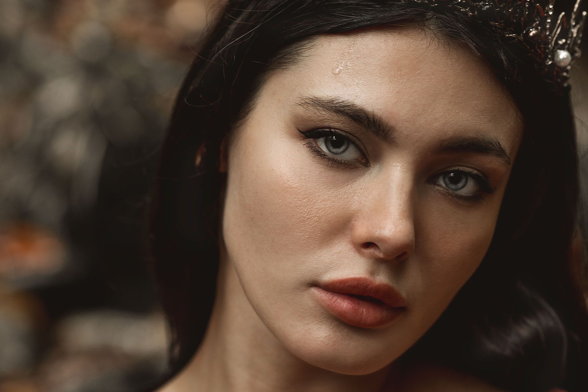 портрет под дождем брюнетка голубые глаза горизонтальное, Ирина Мухина
