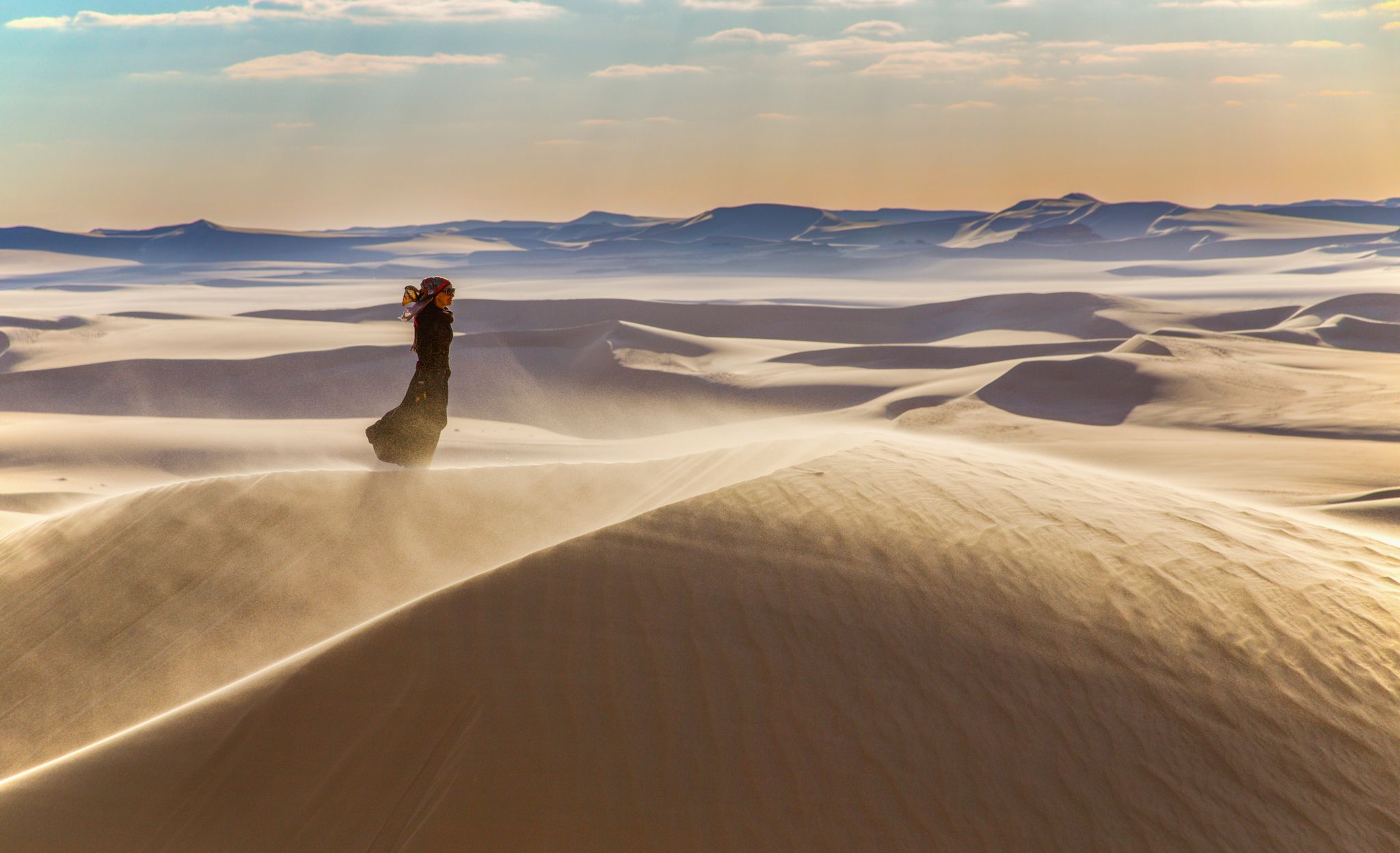 пейзаж девушка пустыня барханы дюны песок ветер, Мурзинов Виктор