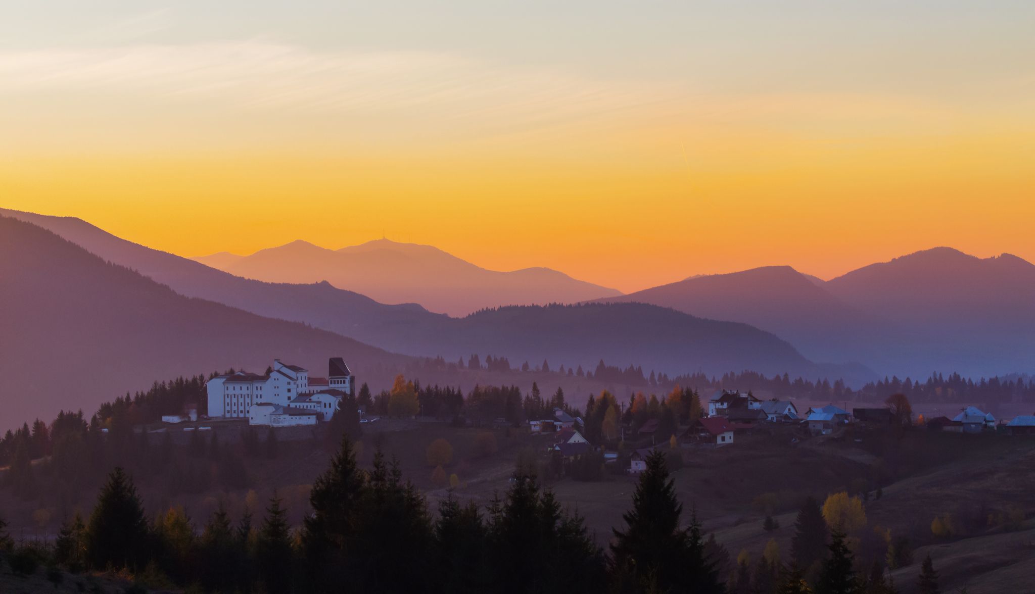 горы пейзаж осень вечер деревня, Мурзинов Виктор