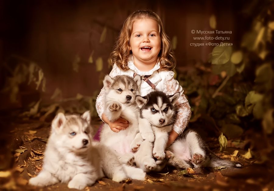 фотосессия с хаски проект "Малыши и хаски в осеннем лесу"