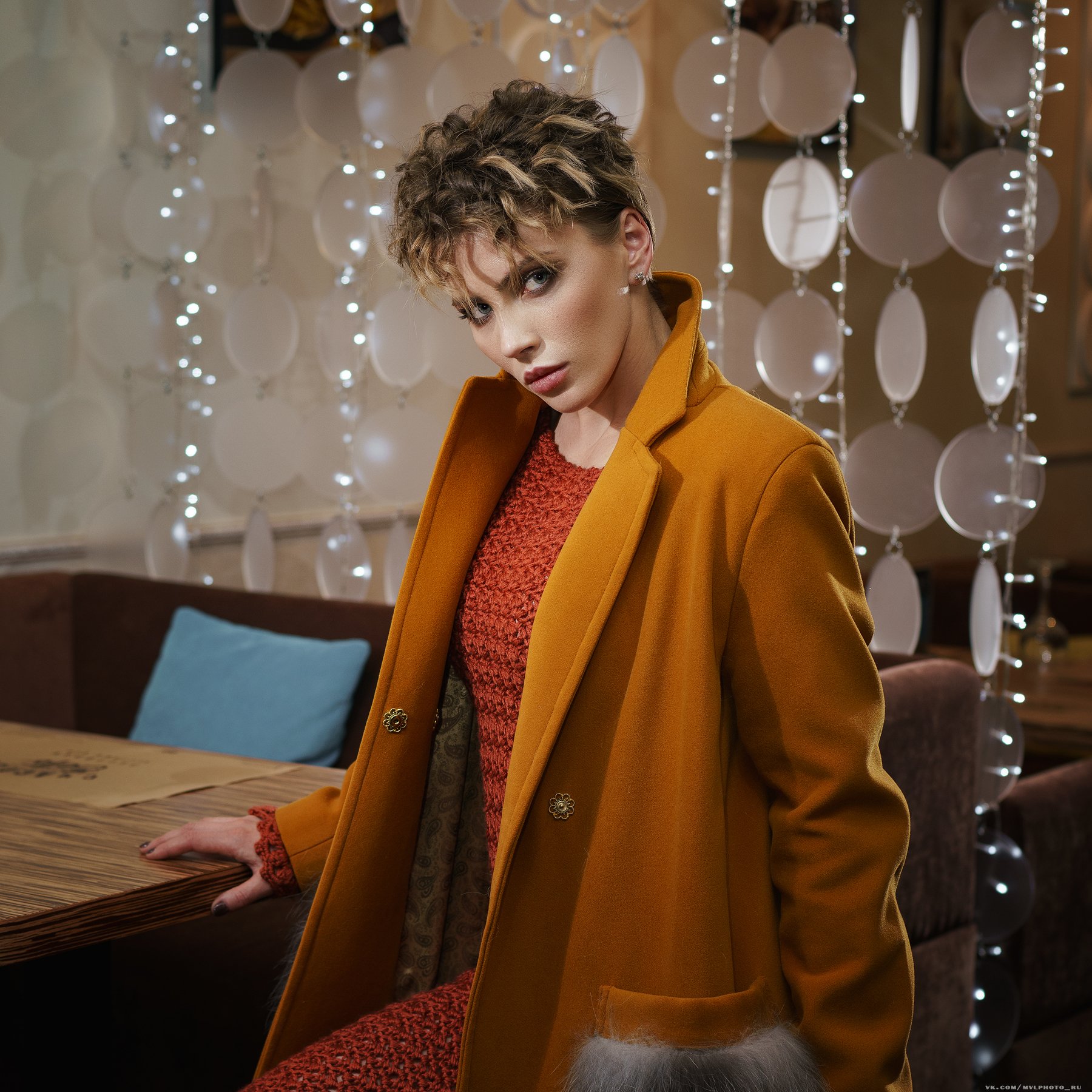девушка, пальто, вязанные изделия, прическа, взгляд, фэшн, в ресторане, Вадим Миронов