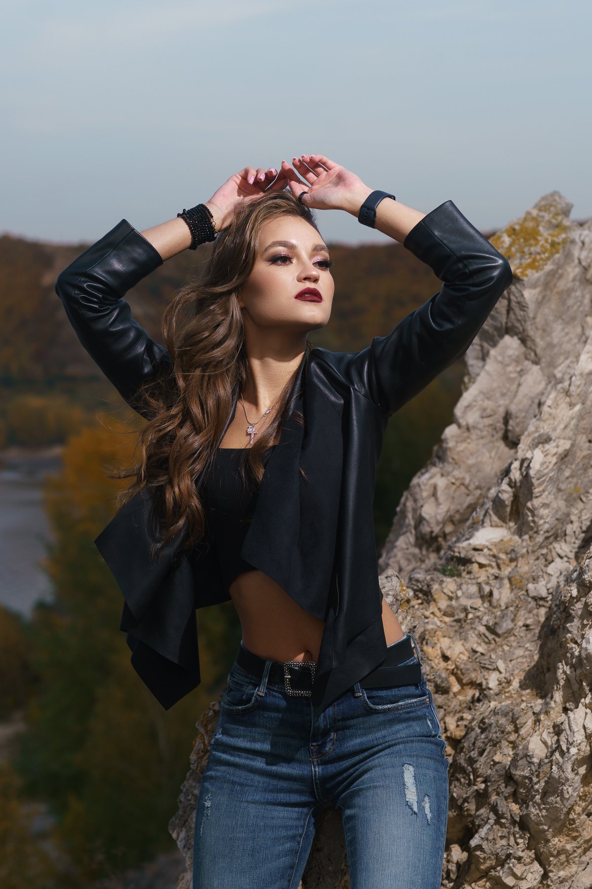 девушка, осень, autum, girl, горы, жесткай свет, вечер, кожаная куртка, топик, Вадим Миронов