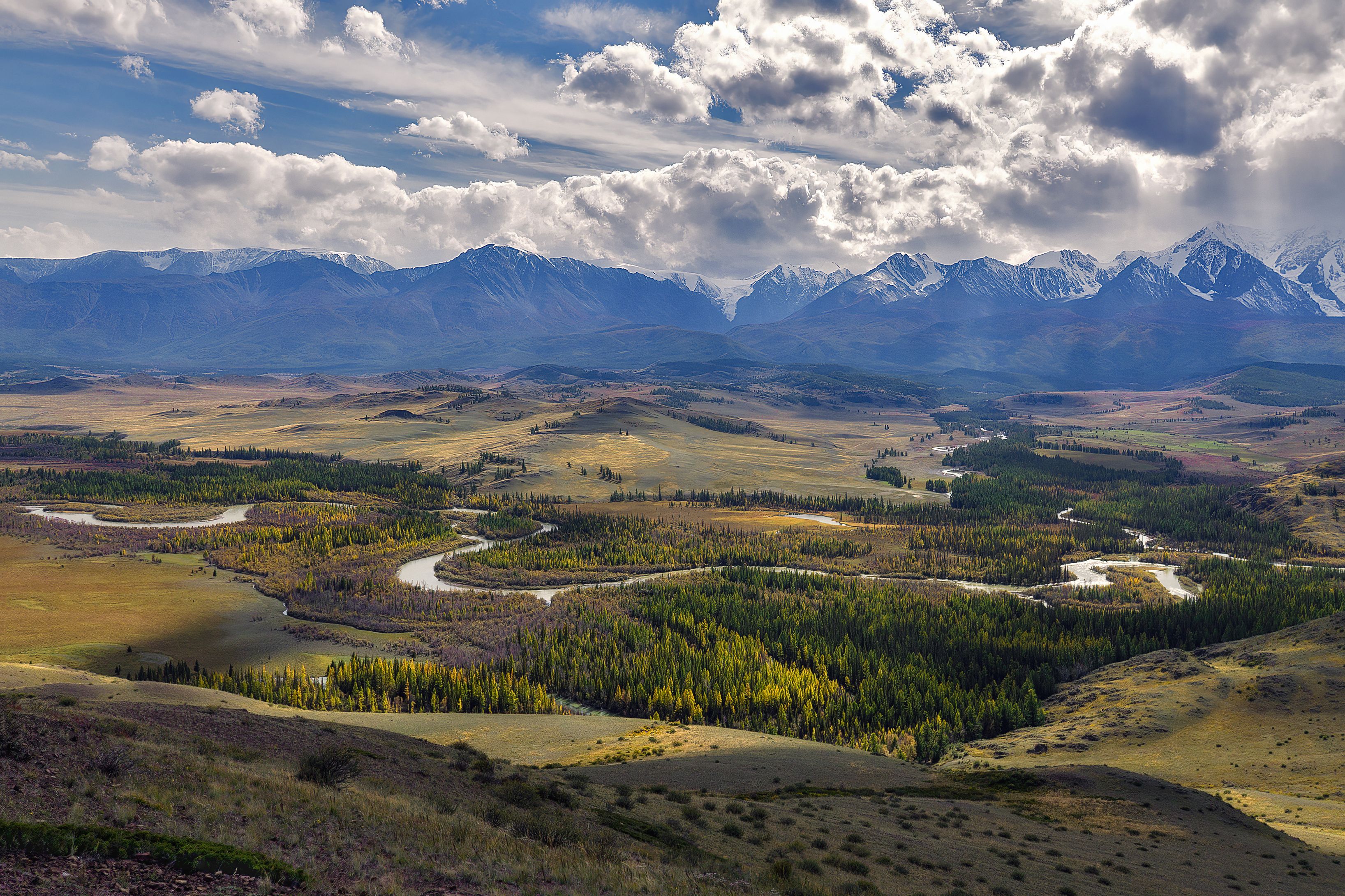 Какая красивая долина с меандром реки! Масштаб просто поражает! Кажется, что горы рядом, а идти до них будешь целый день, да и то навряд ли дойдёшь. Шикарное фото!