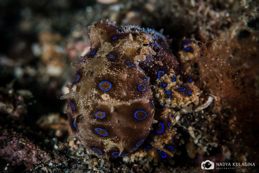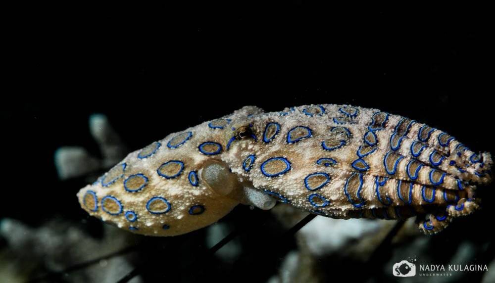 Синекольчатый осьминог считается одним из самых ядовитых животных на свете. Не смотря на свои небольшие размеры (до 10-12 см), он обладает достаточным количеством яда, чтобы убить 26 человек за несколько минут. Яд этого малыша обладает нервно-паралитическим действием. Жертва теряет возможность двигаться, находясь при этом в полном сознании, и погибает от удушья.