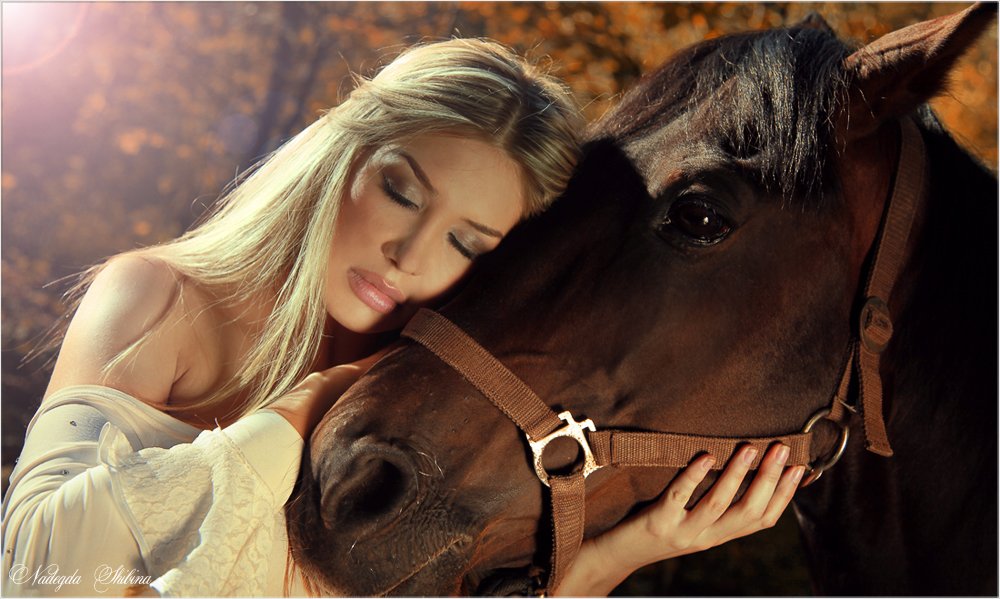 Great photo, beautiful model and lovely horse. Nice light.