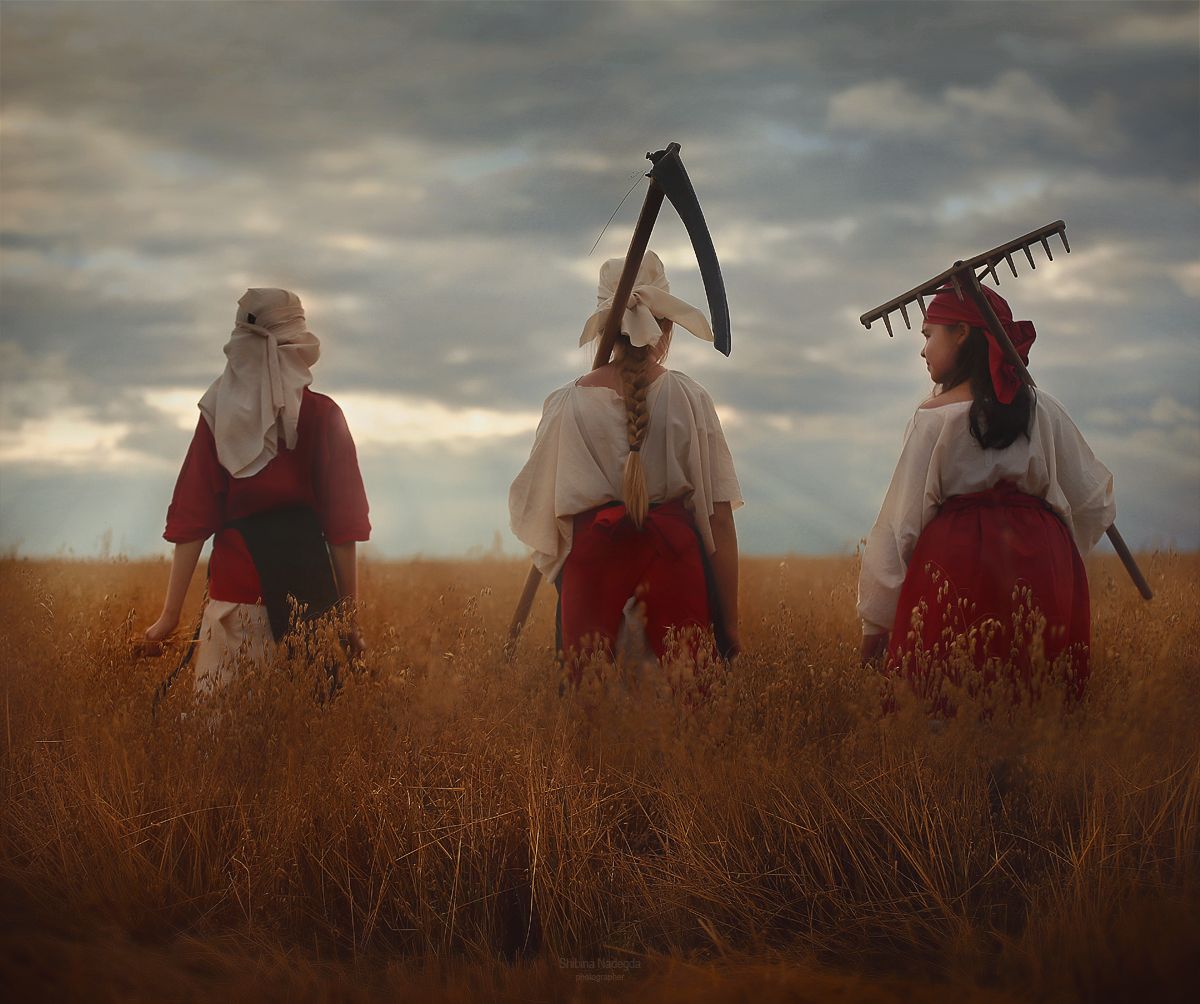 Снято красиво - это неоспоримо. Но неправда... гламурные ряженые непонятно во что дети с бессмысленным взглядом, орудие труда держать не умеют. Понятно, что хотелось снять, но идея не доработана. Детали всегда важны...Не хочу обидеть автора, безусловно уважаю Надежду за её креативность и мастерство, но если идти в сторону кинематографической фотографии,то стремление к правде необходимо...