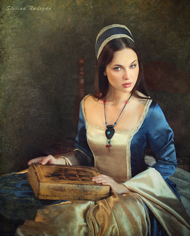 все-таки общая "старина" и фона, и декорации, и деталей не совсем согласуется в гламурным гладким лицом модели... она слишком уверенная, современная для такого образа