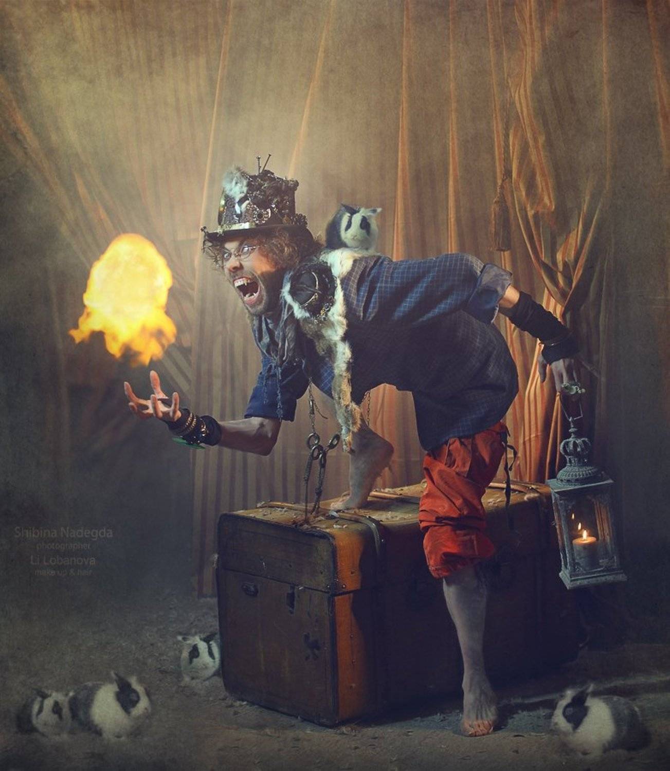 смеялась над кроликом на первом фото. Ощущение, что безумный шляпник его сейчас раздавит, а кролик косит на него глазом с опаской, ахахааа