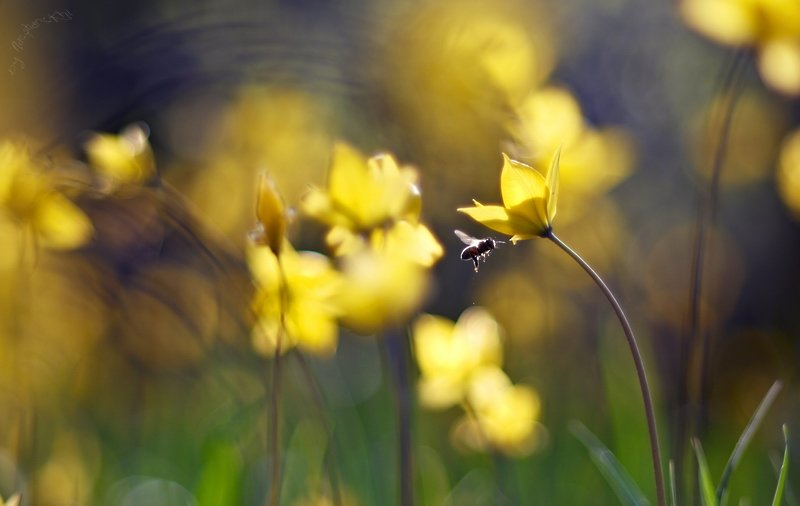 пчела, лесной тюльпан, весна, Кирилл Брага