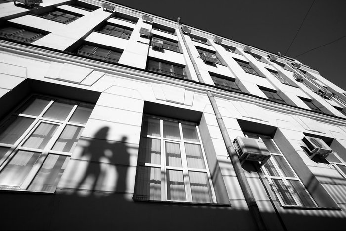 свидание, парень, девушка, город, тени, окна, вечер, Кирилл Брага