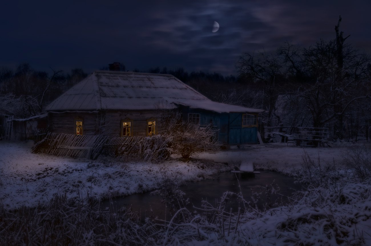 Деревня, Зима, Ночь, Олег Тыркин