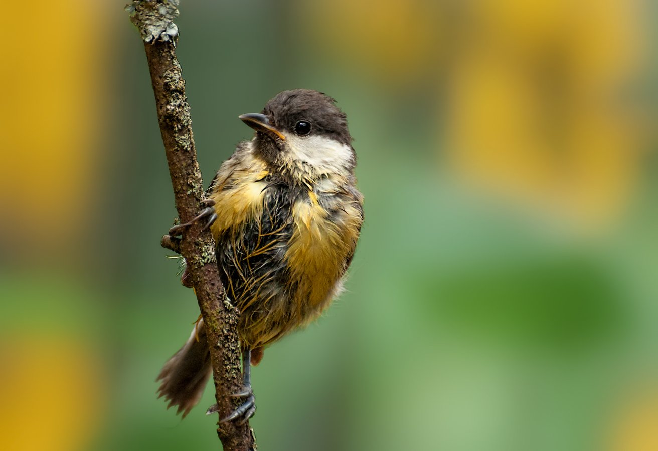 птица, синица, мокрая, ветка, Олег Тыркин
