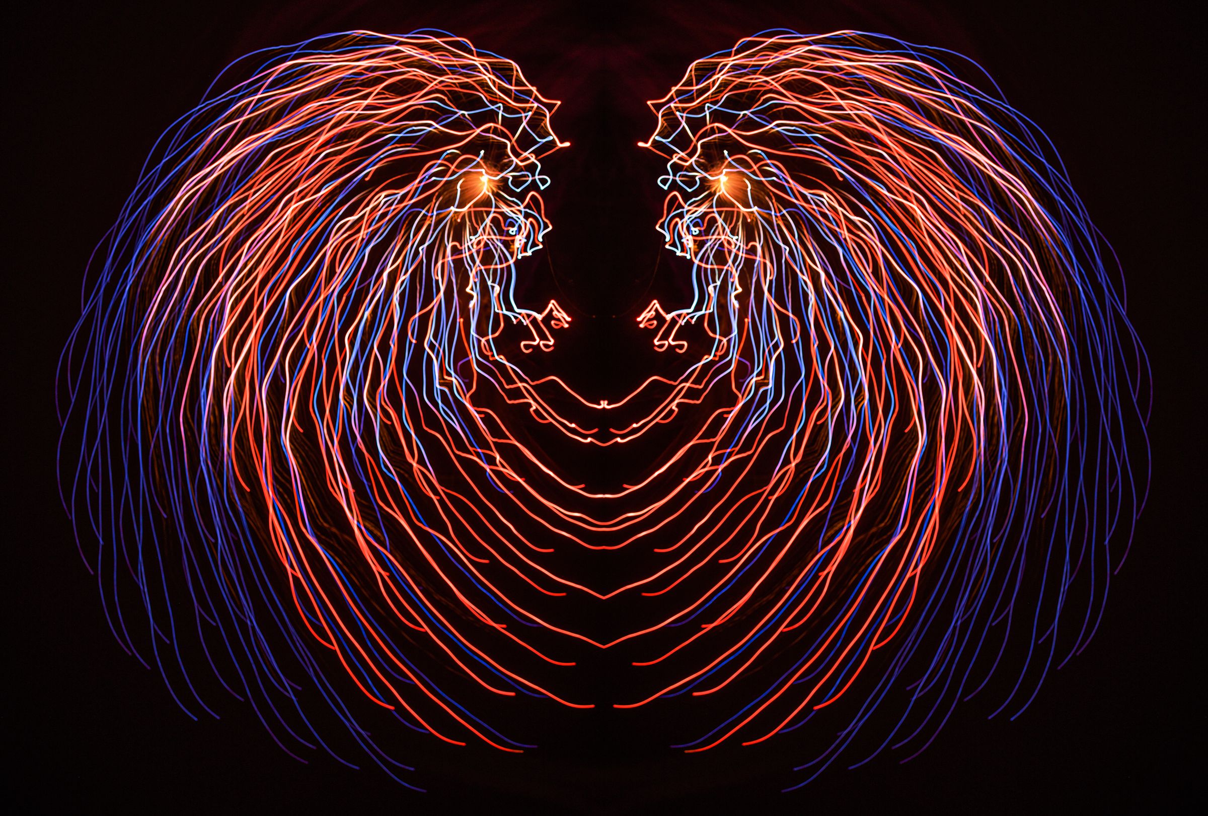 In the Symmetry series, the phoenix flying between the inner and outer universe of human beings is represented by reversing and synthesizing photographs.
