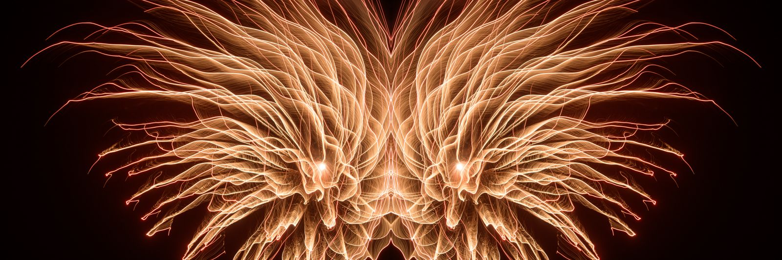 In the Symmetry series, the phoenix flying between the inner and outer universe of human beings is represented by reversing and synthesizing photographs.