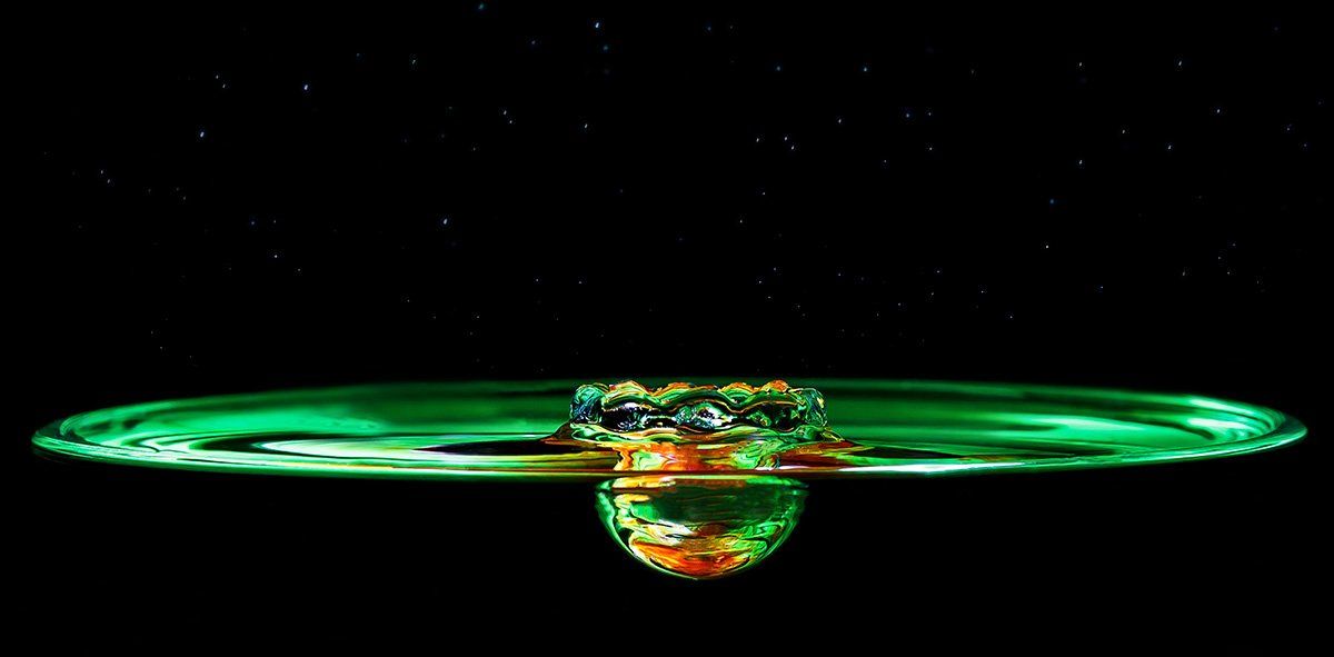 Нет, это обычная стеклянная миска, стоит на куске зелёной бумаги и обрывки разных цветов. Убрал края в редакторе. А "звёзды" это брызги от падения. Сами как то образовались. Немного только подправил)