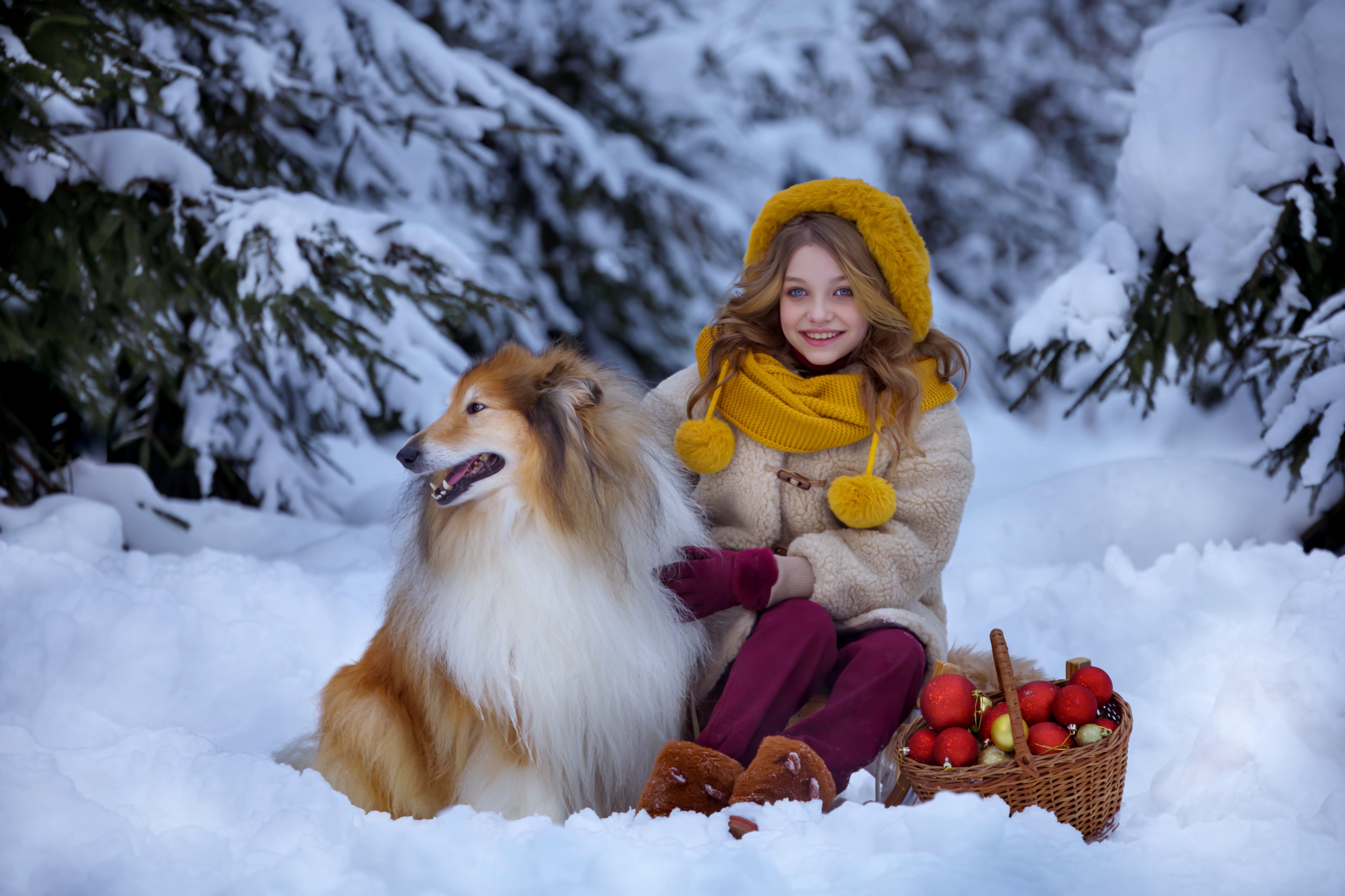 Девочка, зима, собака, Новый год, санки, зимний лес, игрушки, Герцен Наталья