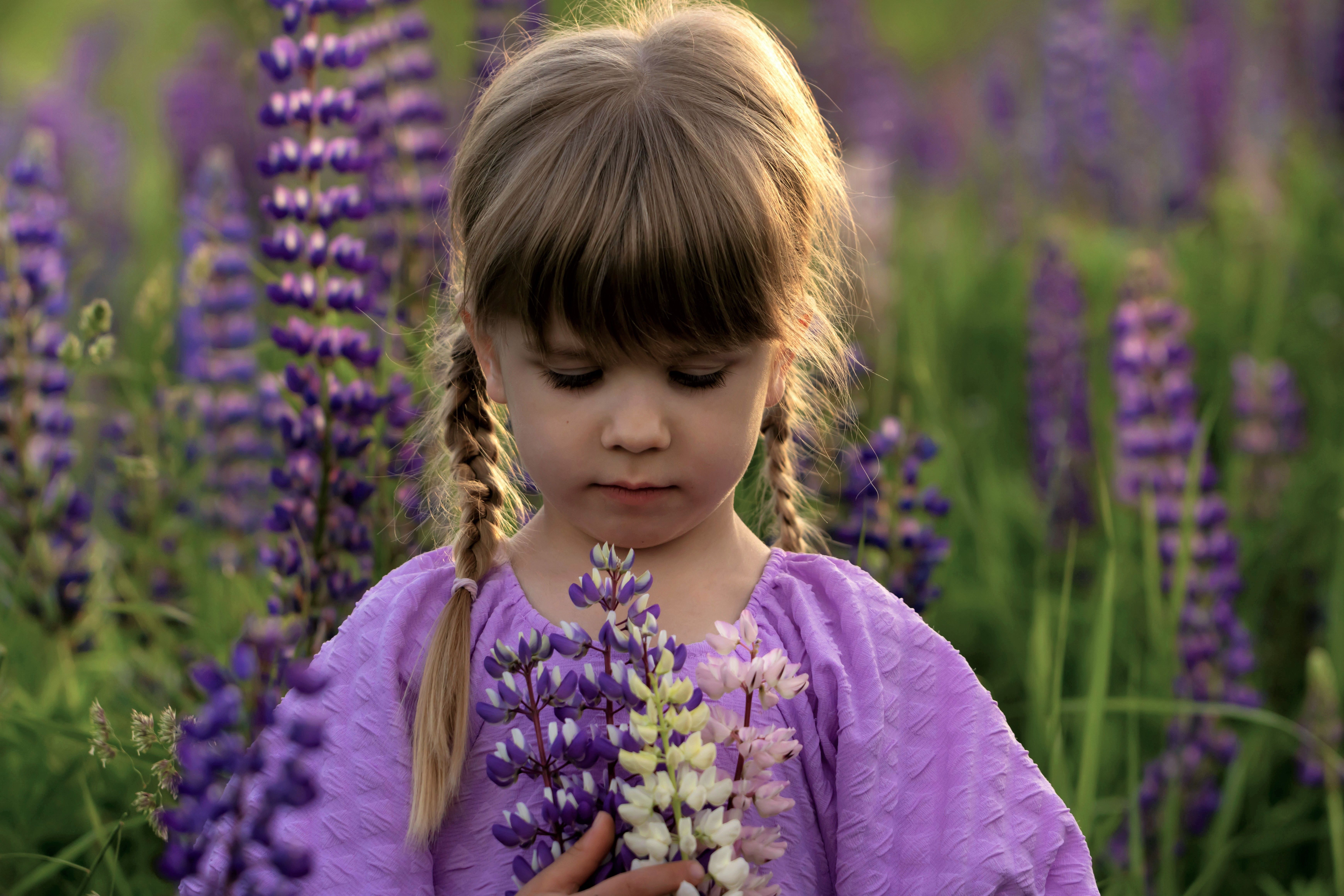 Девочка, портрет, лето, цветы, люпины, Герцен Наталья